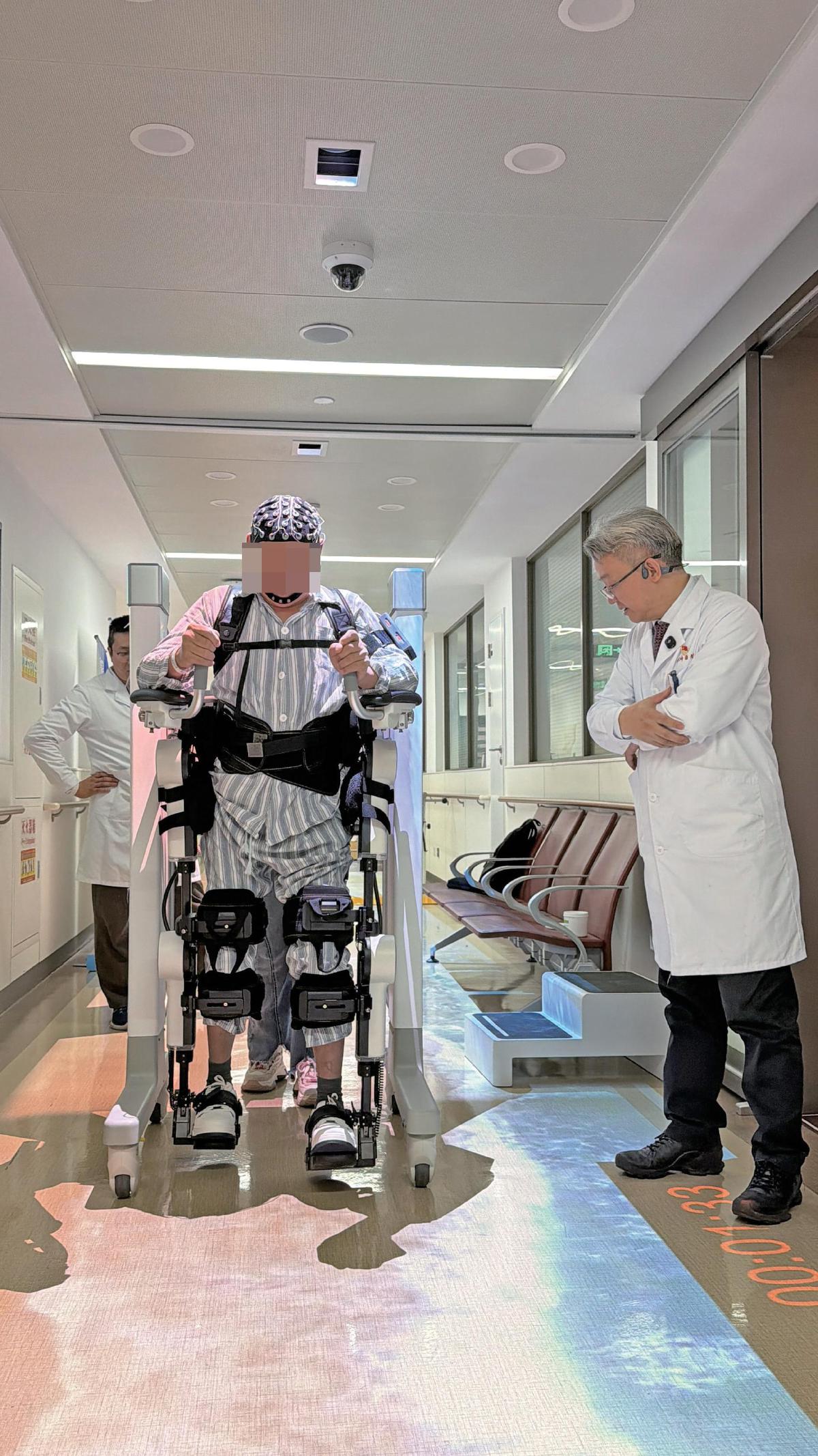 在同济大学附属同济医院同康楼骨科研究型病房里,3月20日试机,蓝色脑电帽贴紧头皮,叶文闭了一下眼,然后想:抬右腿,通过意念让外骨骼机器人带动腿部完成迈步动作。电脑上会提示你准备开始,自己想迈右腿,它在电脑上提示成功了,腿就动了。他向记者描述那一刻,语气平静,像在说一件终于发生的事。
